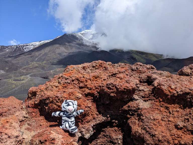 An zwei Tagen sind wir verschiedene Wege am Ätna gewandert. Der Ätna ist ein aktiver Vulkan auf Sizilien. Am ersten Tag sind wir zur Südseite gefahren. Dort waren einige Krater und ein Haufen schwarzer Steine zu sehen. Nuut war auch dabei.