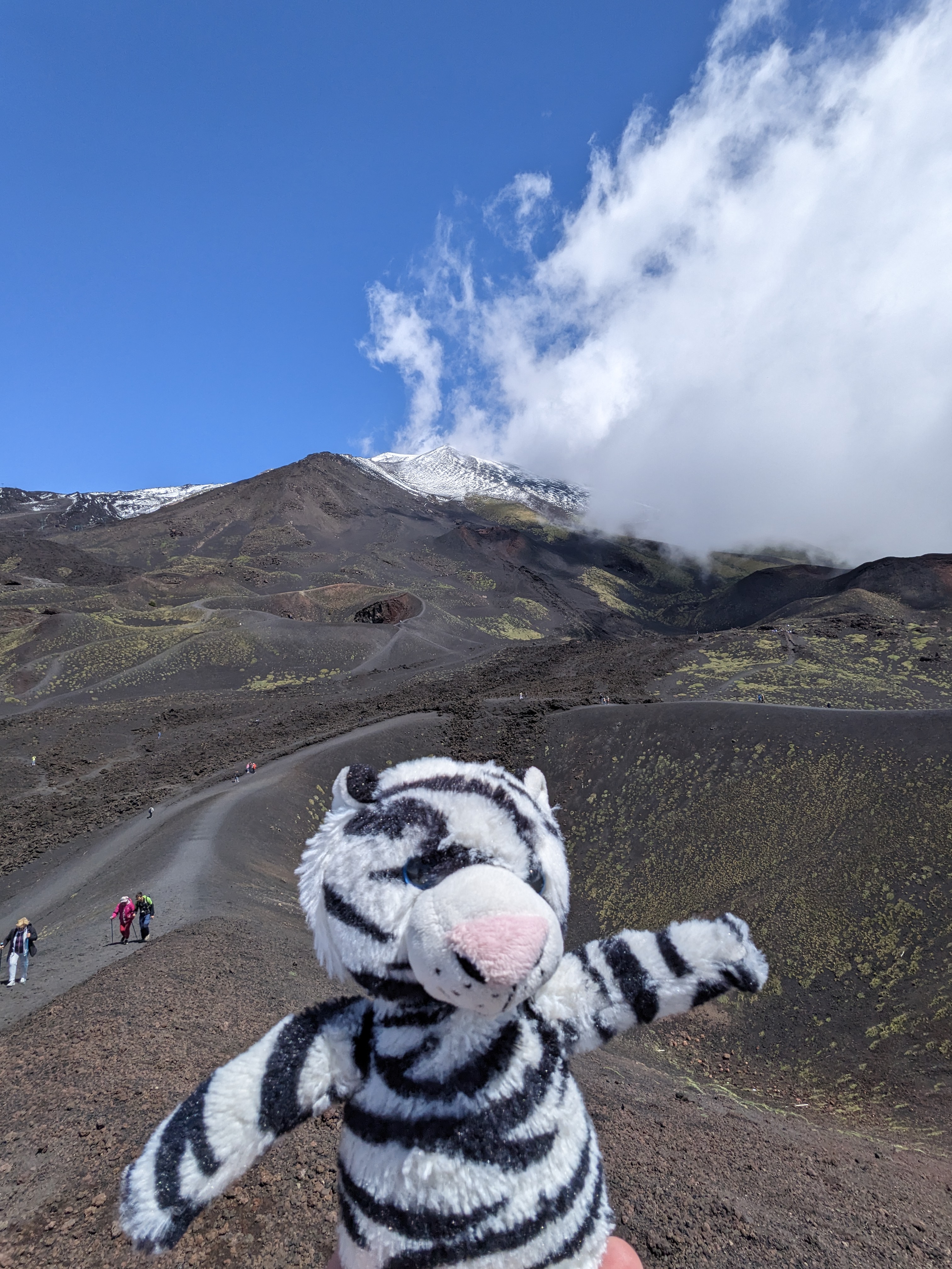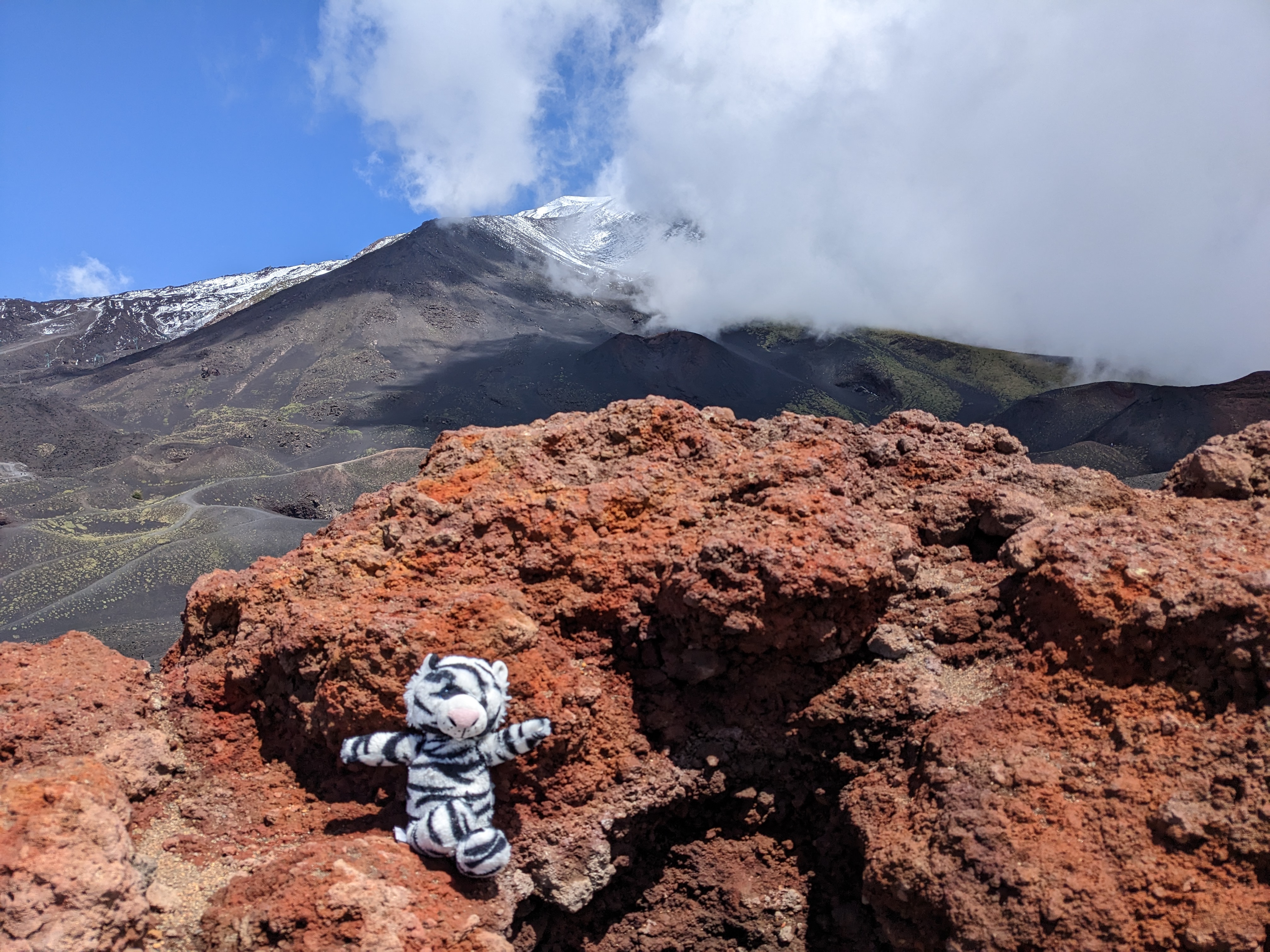 An zwei Tagen sind wir verschiedene Wege am Ätna gewandert. Der Ätna ist ein aktiver Vulkan auf Sizilien. Am ersten Tag sind wir zur Südseite gefahren. Dort waren einige Krater und ein Haufen schwarzer Steine zu sehen. Nuut war auch dabei.
