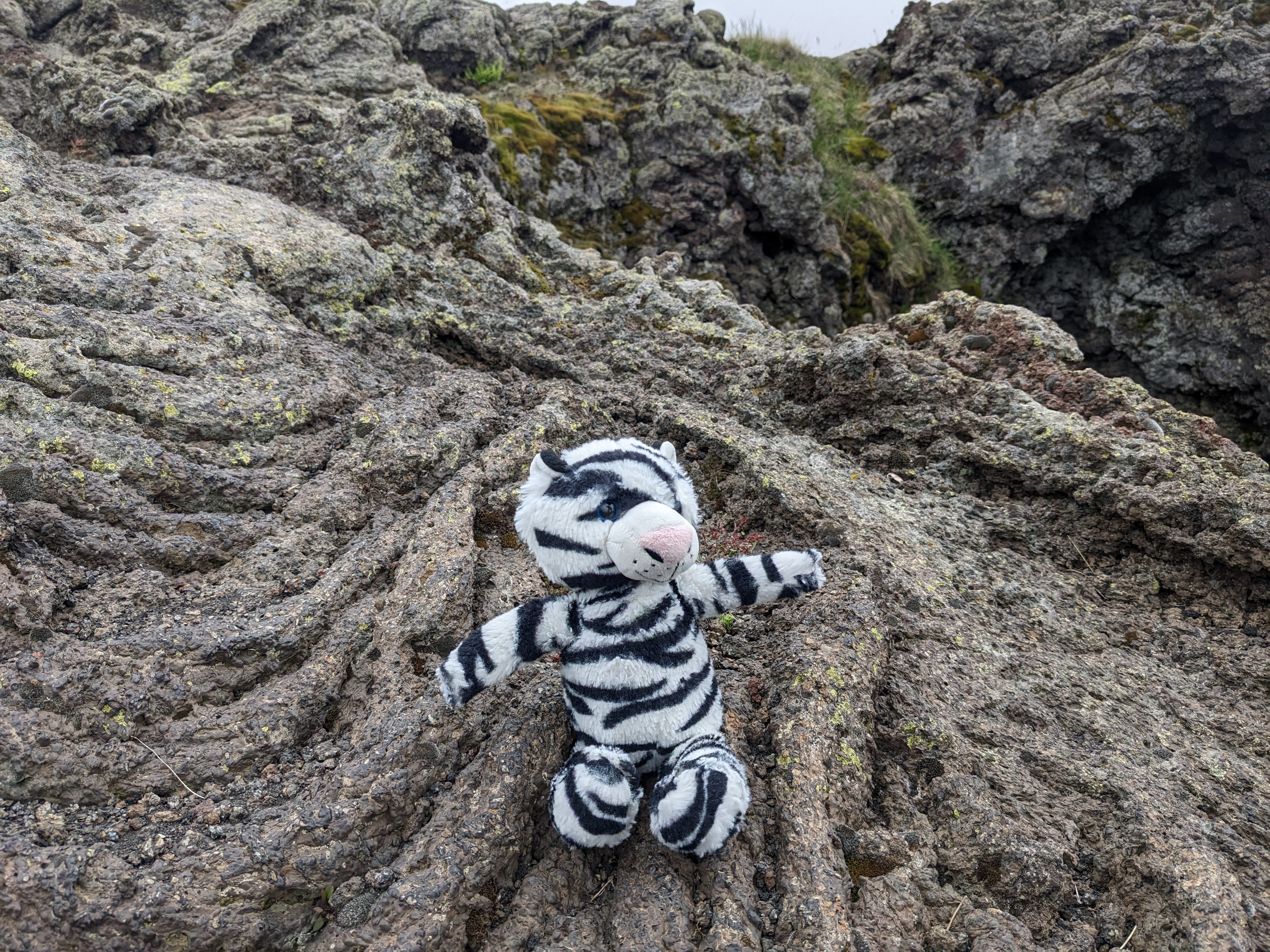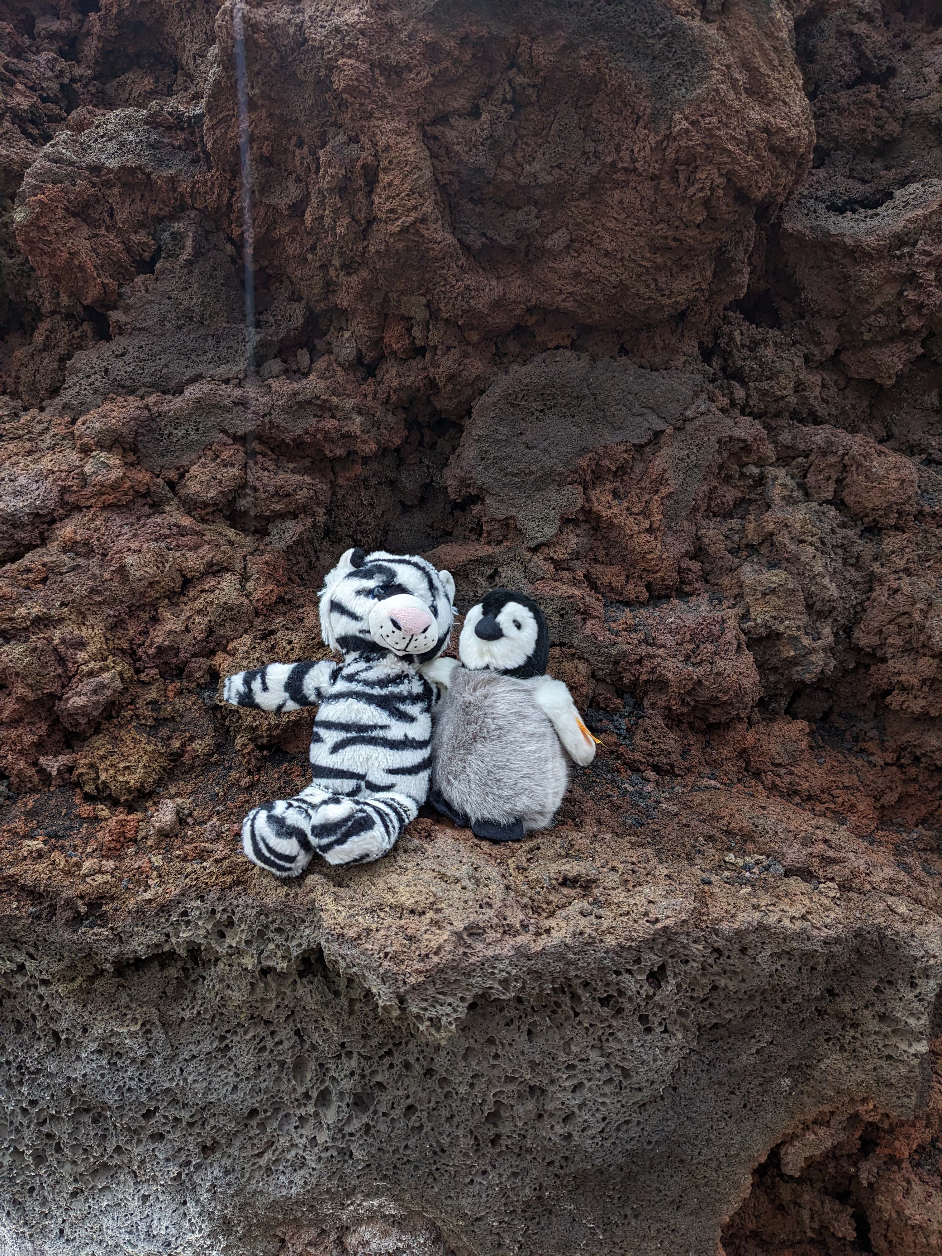 Am zweiten Tag waren wir an der Ostseite. Dort gab es inzwischen Kalte Lavafelder und tolle Aussichten zu sehen. Vor einigen Jahren gab es einen Ausbruch und Häuser wurden unter Lava und Stein begraben. Eins davon konnten wir uns ansehen. Am Ende habe ich mich noch in dieses Schild gesetzt.