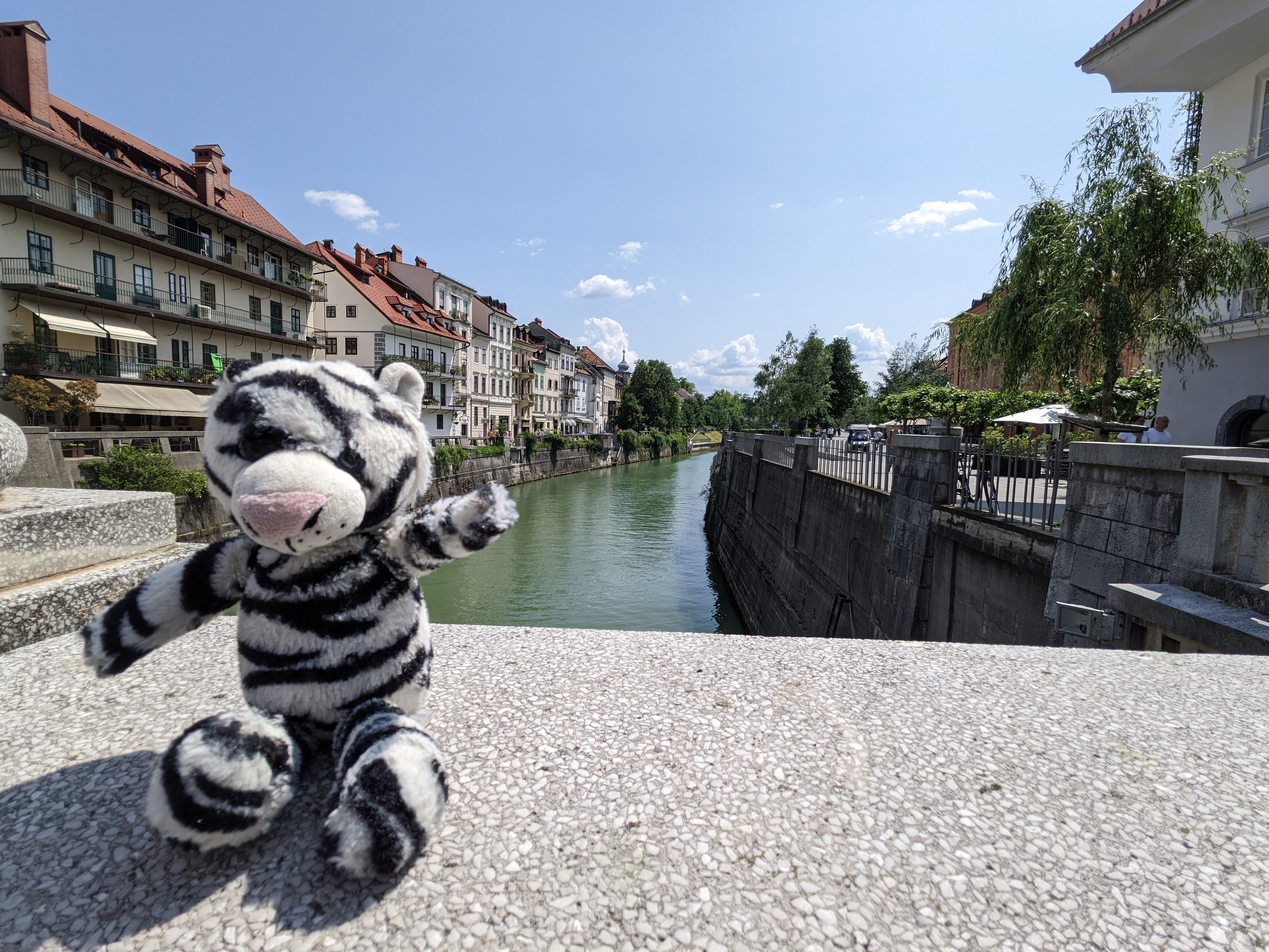 Ljubljana ist eine schöne und sehr grüne Stadt. Die anderen sagen, dass der Kaffee hier nicht so gut ist wie in Italien. Mir haben sie aber leider trotzdem nichts abgegeben.