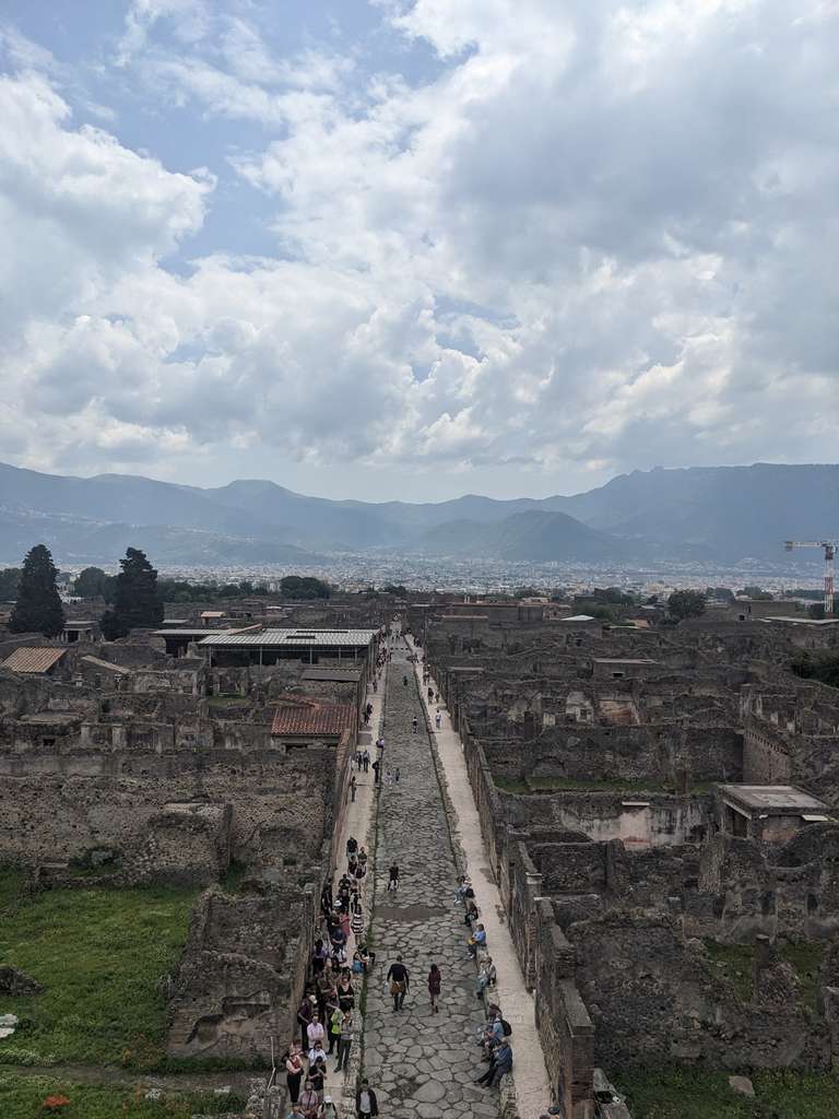 Am nächsten Tag sind wir dann nach Pompei gefahren. Das ist eine alte römische Stadt die bei einem Vulkanausbruch begraben wurde. Heute kann man die besichtigen. Die gesamte Stadt ist überraschend gut erhalten.