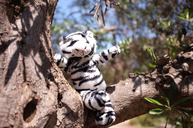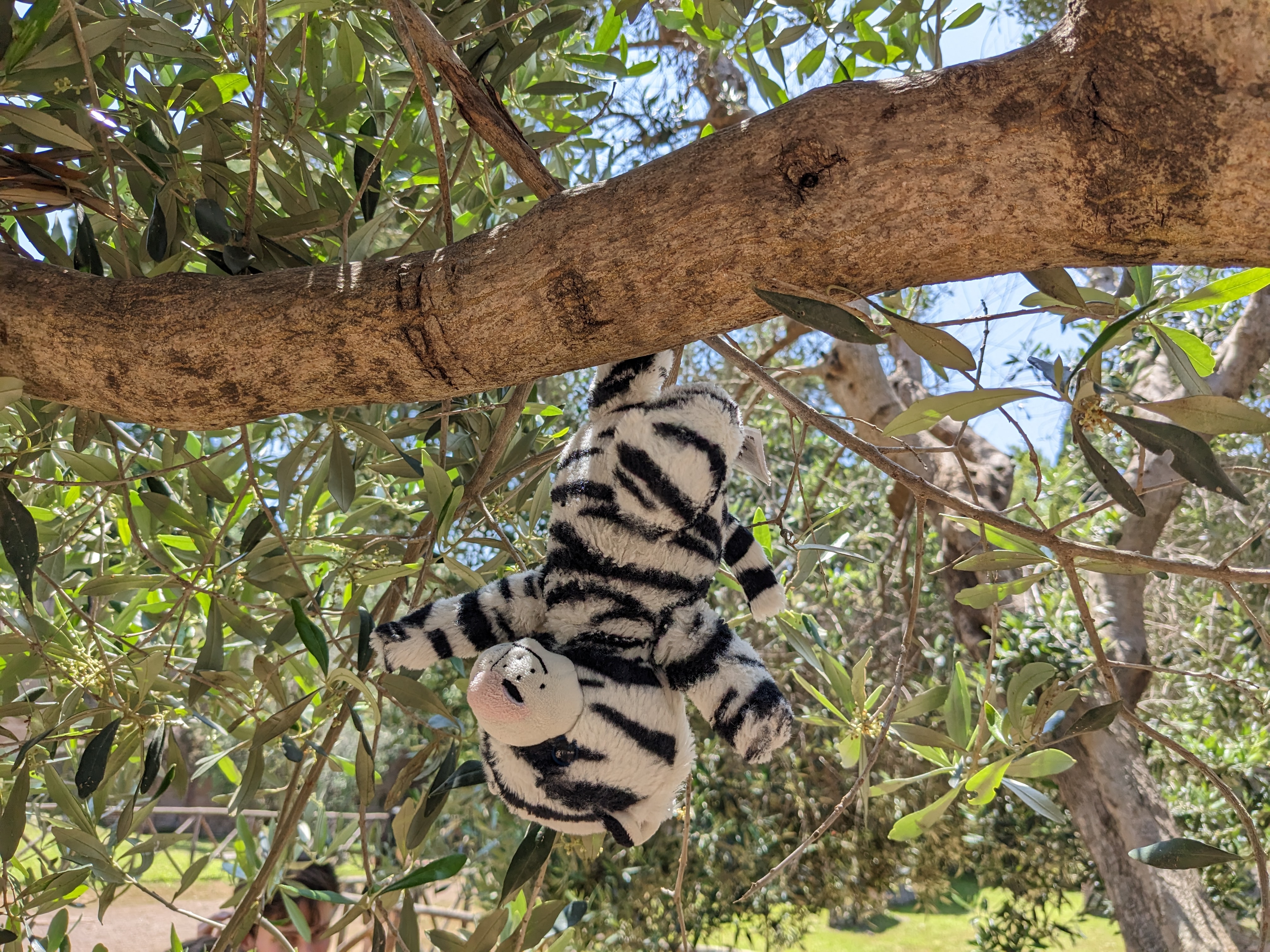 An dem Tag war es sehr heiß. Zum Abkühlen haben wir uns dann in einen Olivenbaum gesetzt. Die Oliven schmecken hier sehr lecker und das Olivenöl ist so viel besser als daheim.